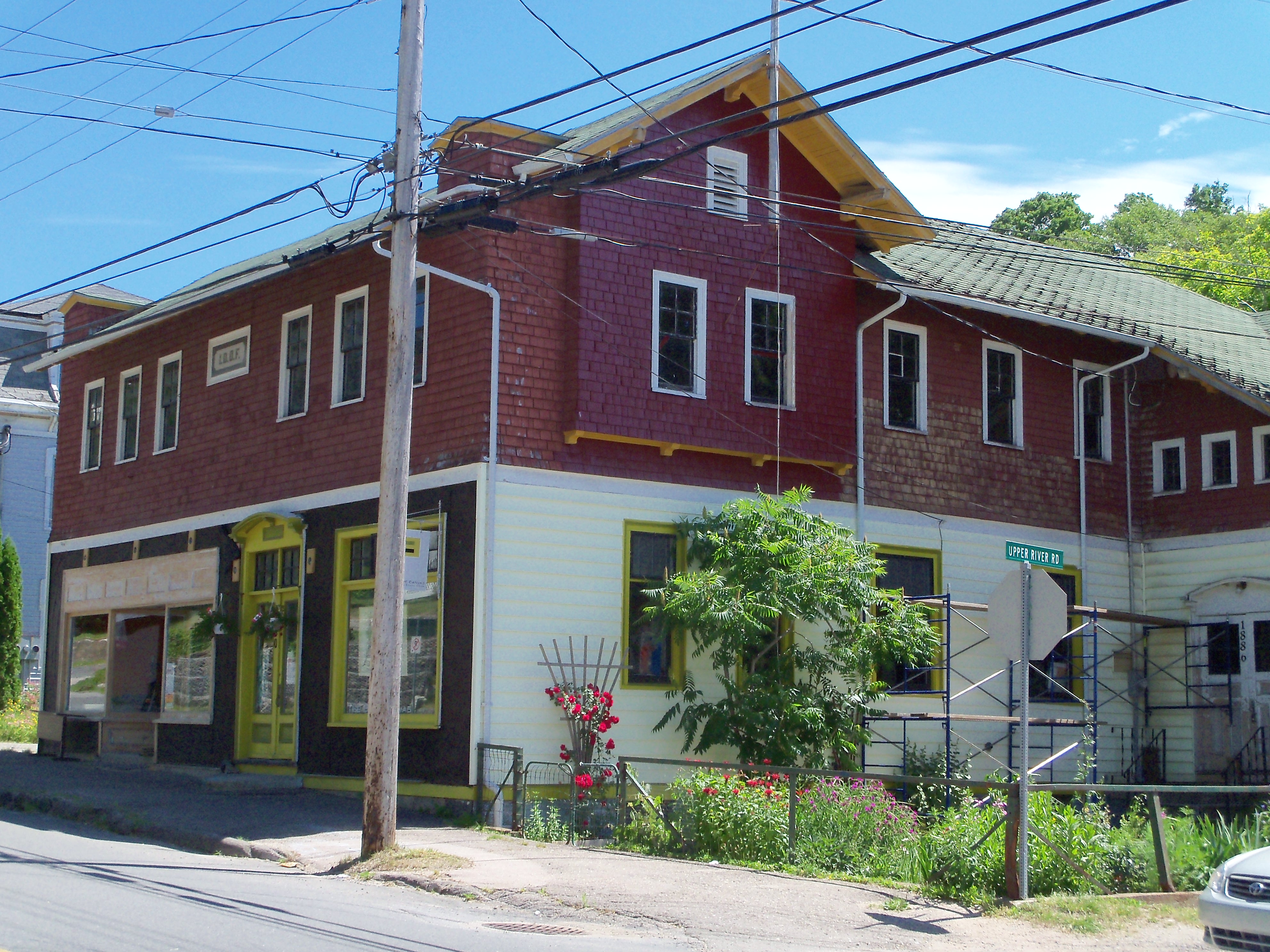 Captain Anthony Building: This was built in 1893 and remains the only waterfront commercial building in Bear River, Digby County. It has very direct links to the “golden age of sail”, 1870-1915. Once encircled by a wharf, it served the needs of the ship-building community.The encircling wharf and storage building at the rear, were removed before the 1920s. The third floor was lost to a fire in the late teen’s. However, the remainder of the building has remained virtually unchanged.