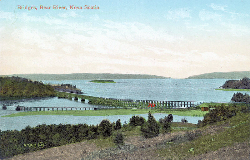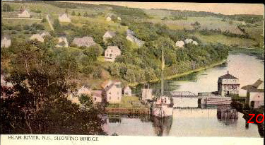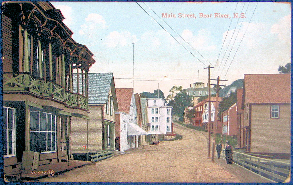 Andrew H. Harris 1837. This is one of the oldest remaining buildings in the village, and the residence of Andrew Harris, who ran a dry goods and grocery store near the Bridge He was deeded the land by his father, John Spurr Harris. It remained in the Harris family until 1891, when it was purchased by Dr. Robert Ellison . In 1907, it was purchased by Rhoda Yorke, wife of John Yorke who ran a livery stable between Bear River and Deep Brook, It was her horse and wagon teams that met the Dominion Atlantic trains in Smith’s Cove and brought them into Bear River. She also owned a dry goods store. The family also operated the Green Lantern theater for many years.