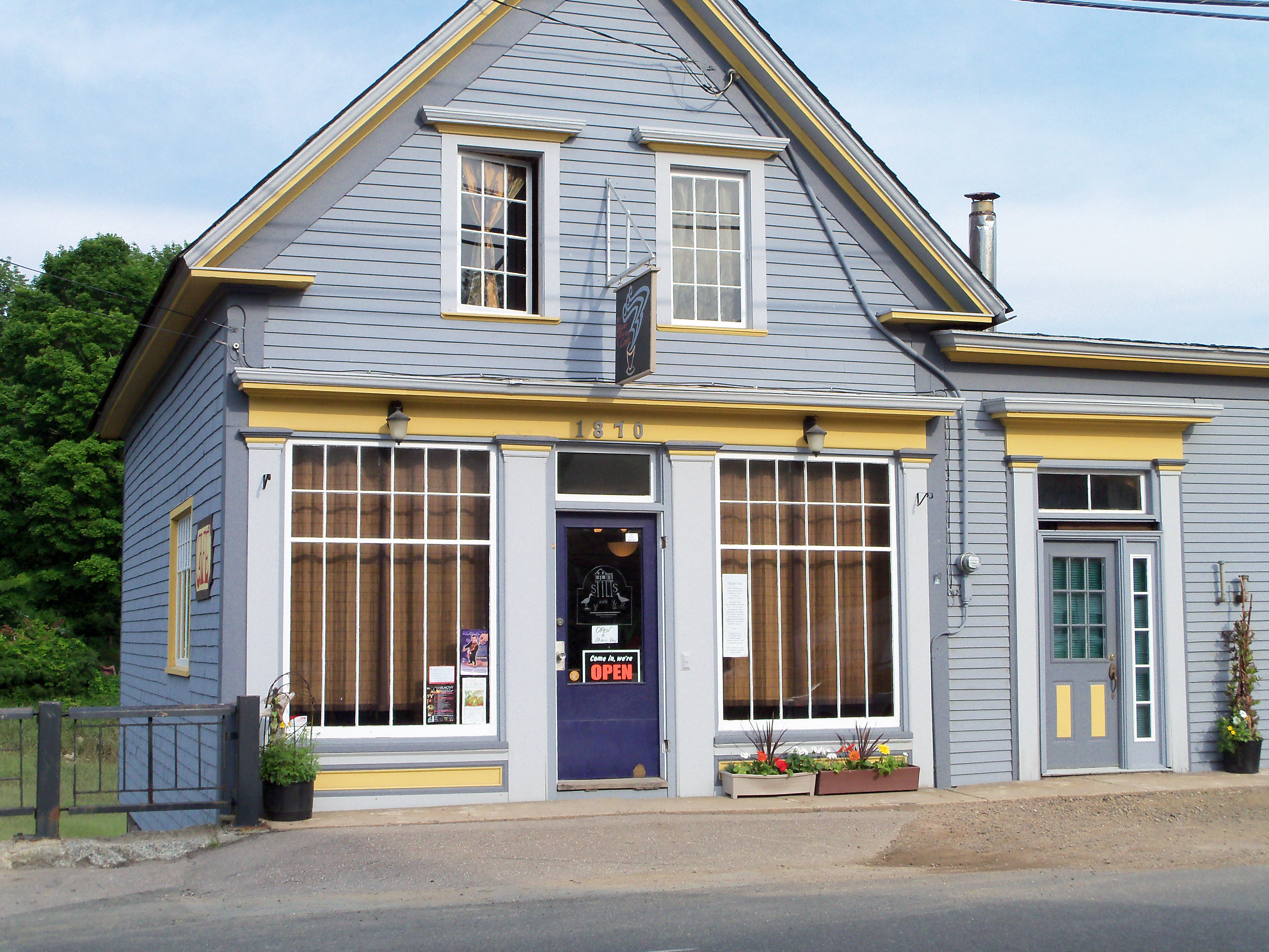 Trading Company Building 1856. The first building of record on this lot was built in 1856 by David Rice and purchased by Harris Harding Chute in 1863 and later by the Clarke Bros. in 1880. With the demise of the Clark Bros. empire in the 1920’s,it was taken over as the Bear River Trading Company by Mac Parker in 1932 and it is well loved and fondly remembered as such as a wonderful general store that included dry goods, housewares, hardware, groceries and a great candy counter. In the 1880’s the building was substantially renovated by the Bear River Economic Development Society. It originally was connected to the adjoining building, built in 1856 by David Rice. It was referred to as the Sail loft building because the upper storey was used for the storage of sails for the wooden ships. It also housed the local telegraph office for many years. The Trading Company complex is a cornerstone of the village, and one of the few remaining buildings that was built on “stilts’ over the water.