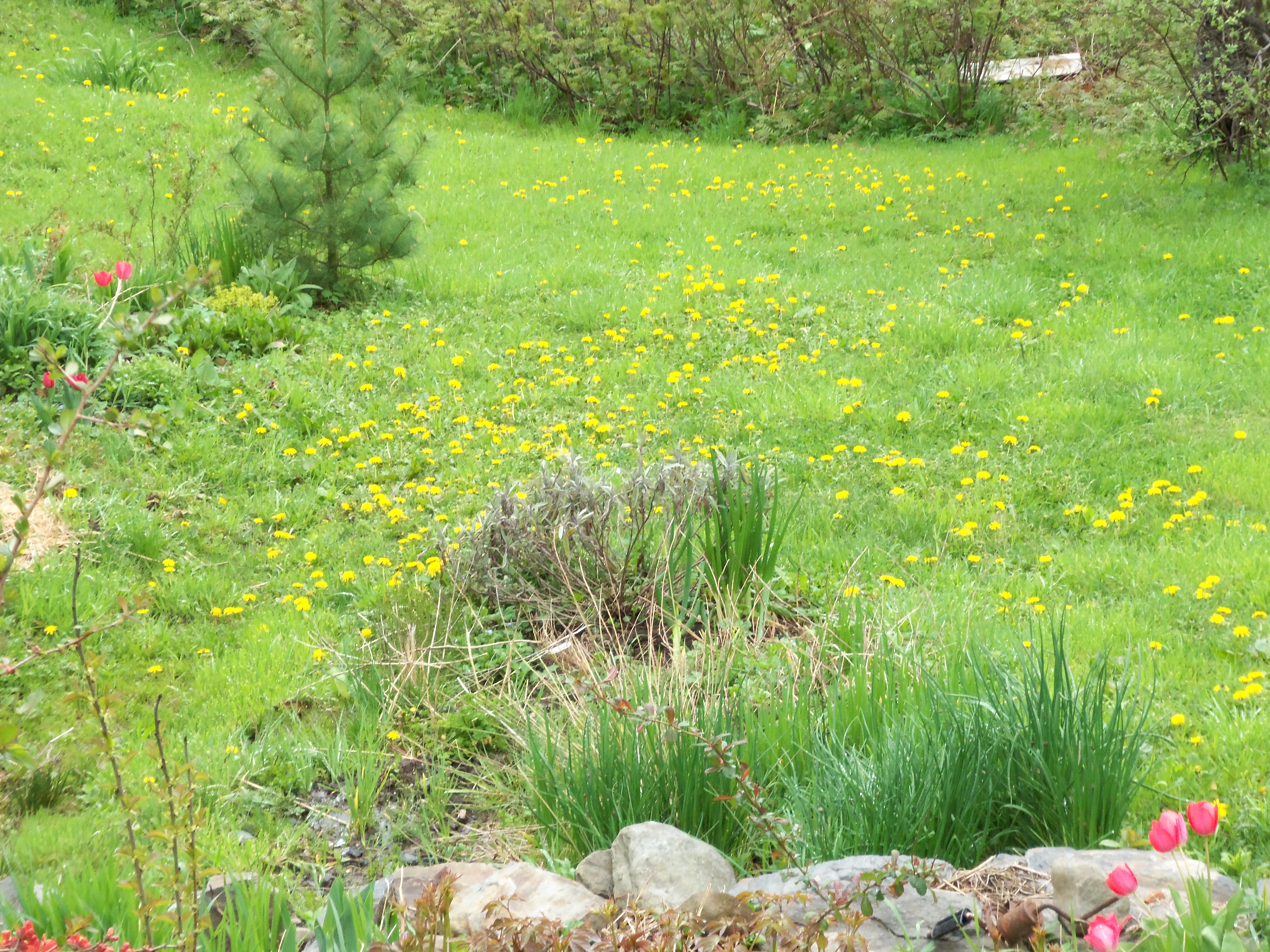 a lawn of dandelions