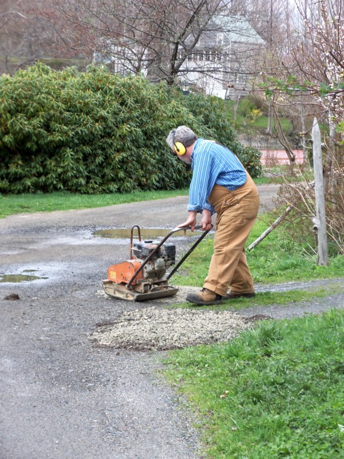 filling in potholes