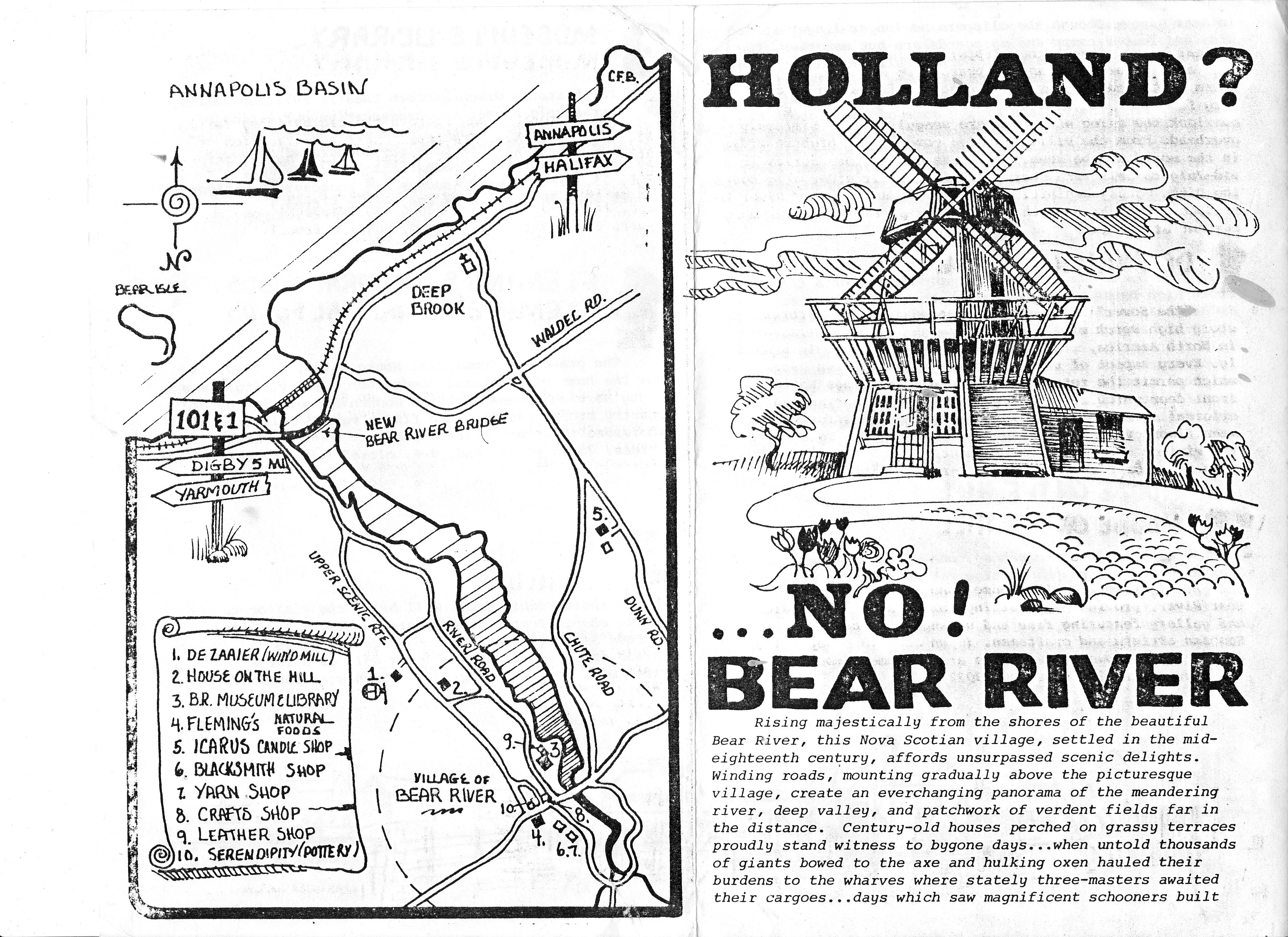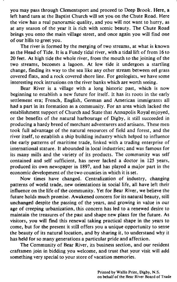 And then there’s this one from the early 70’s: probably the first co-operative “tourist” effort for the village in the 1900’s. It was organized and published by the Bear River Board of Trade.