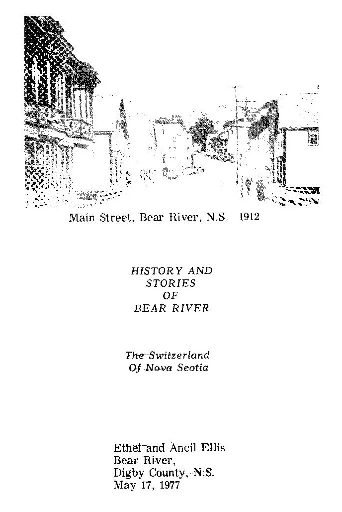 The most recent pamphlet we can find written by a resident of Bear River about the village is “History and Stories of Bear River, The Switzerland of Nova Scotia.”