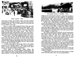 Families from outlying areas would arrive by the truckful during cherry picking season and buy the rights to pick a tree, or even two. Unfortunately, the cherry orchards were wiped out buy a blight in the 1940′s, but the lack of cherries never stopped the village from having the cherry carnival.